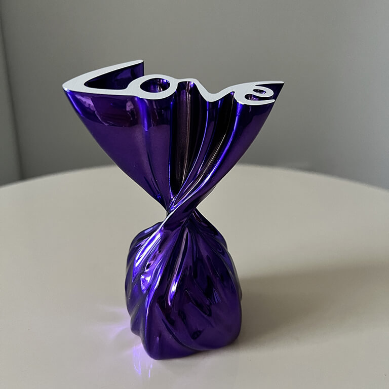 Sculpture disponible en rouge, bleu, or, argent, violet, fuchsia