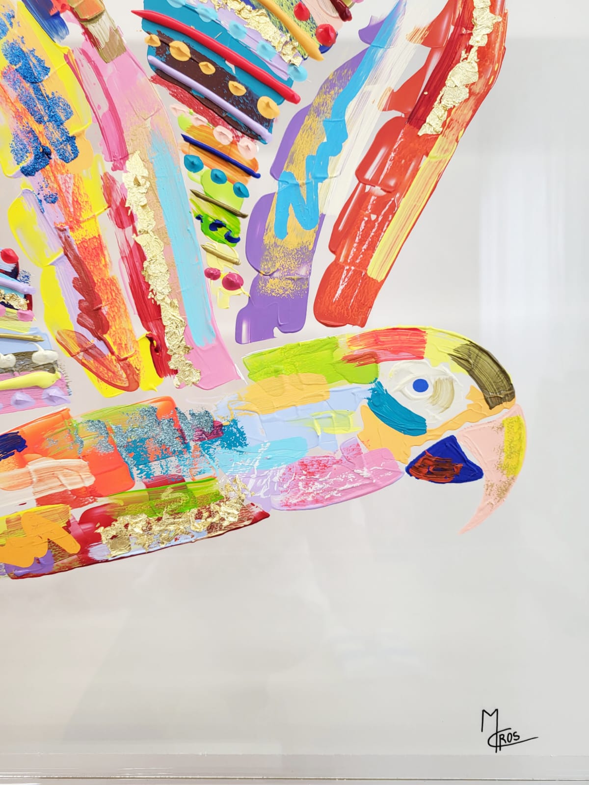 Peinture : acrylique paillettes et feuilles d’or sur Plexiglas